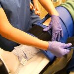 Gepolsterde beenfixatiebanden voor obese patiënten.